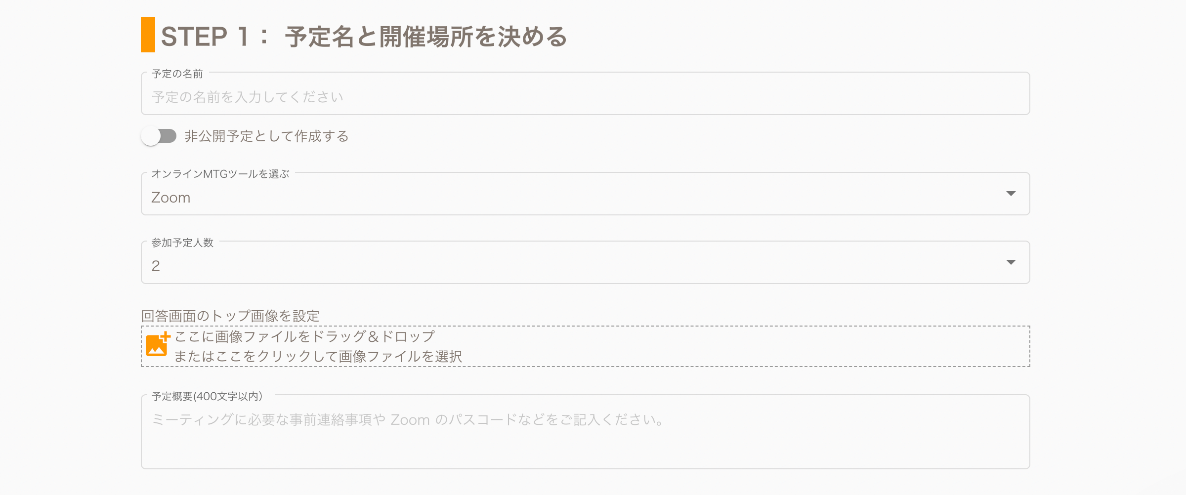 ②STEP1で予定名と開催場所を設定する