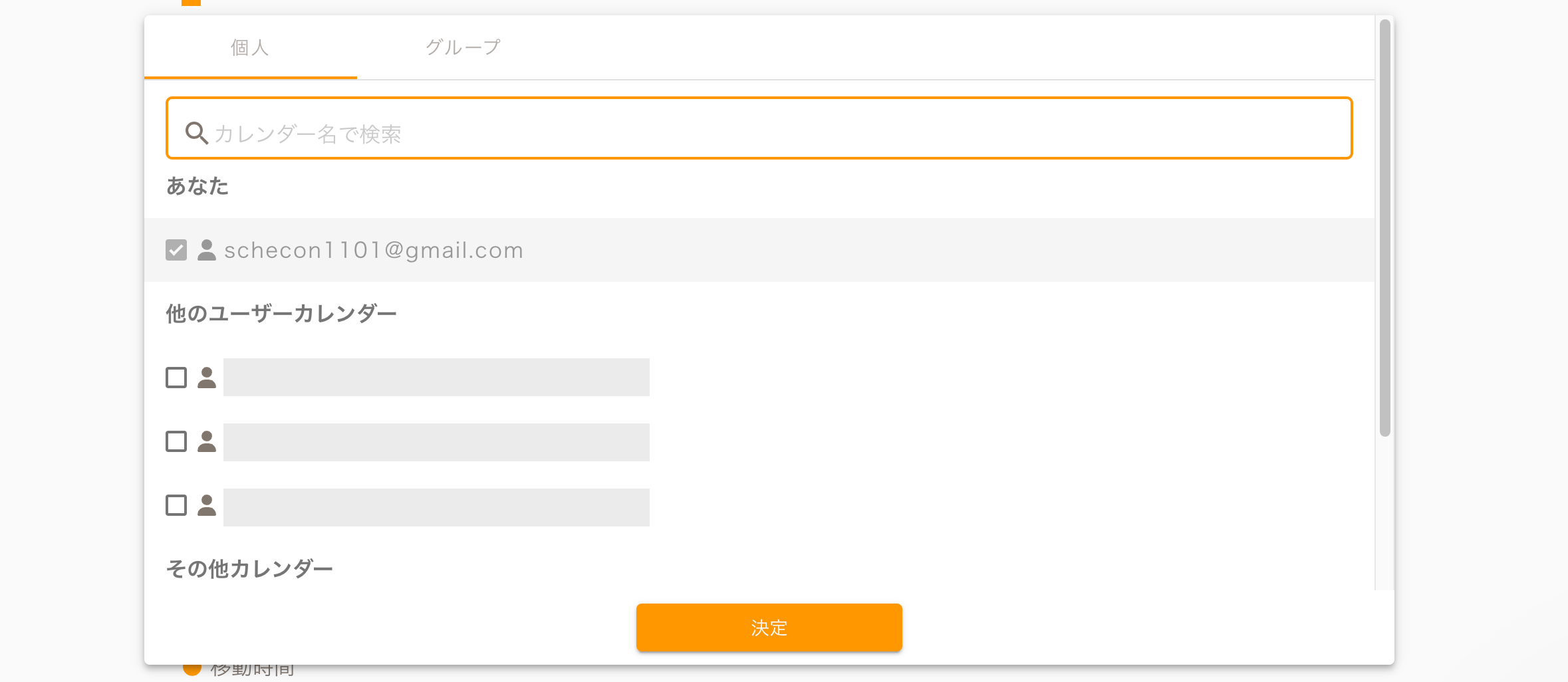 ここに表示されているのは、あらかじめGoogleアカウントを連携させているほかメンバーの情報で、ここからメンバーを選択すれば、Googleカレンダーの情報をもとに瞬時に日程調整することも可能です。