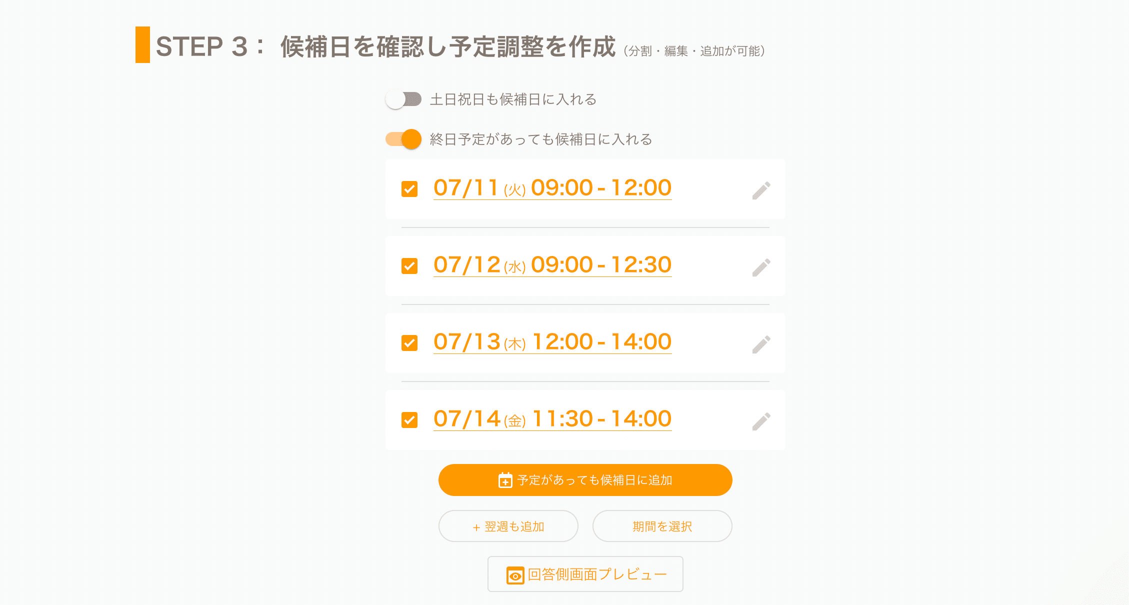 ⑤STEP3で候補日を確認して予定を作成する