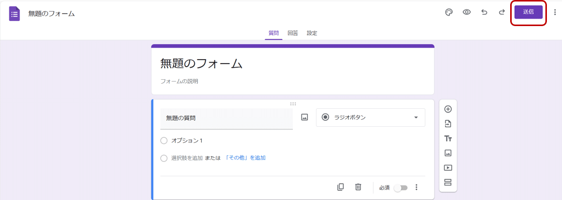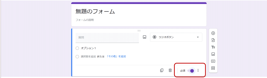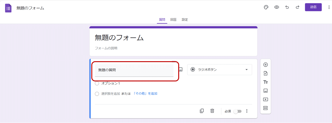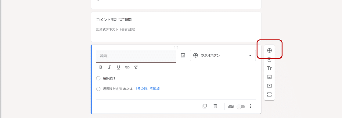 質問項目を増やしたいときは、右側にある+ボタンをクリックしましょう。