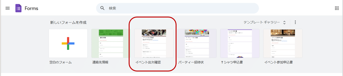 Googleフォームのテンプレートギャラリーから「イベント出欠確認」を選択します。