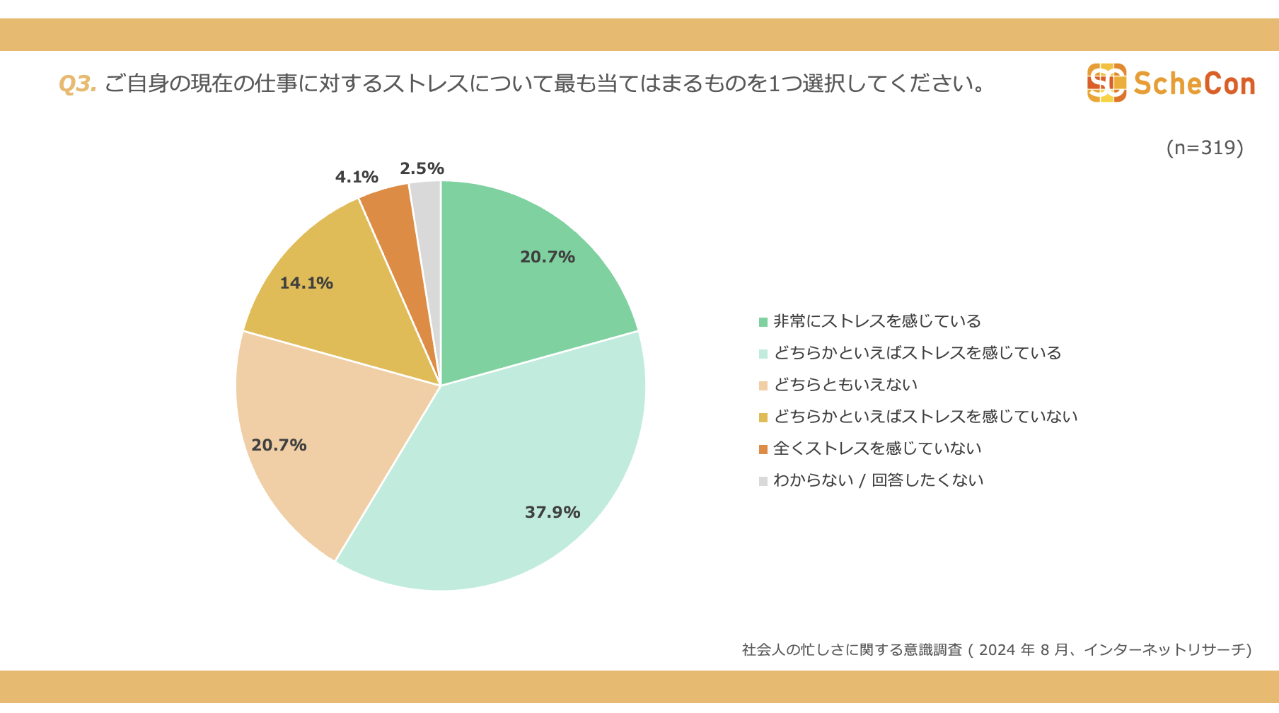 Q3. ご自身の現在の仕事に対するストレスについて最も当てはまるものを1つ選択してください。