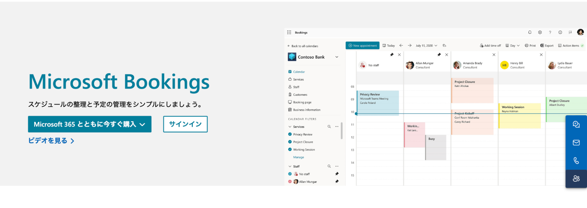 Microsoft Bookingsは、特にビジネス向けに設計された予約管理ツールです。