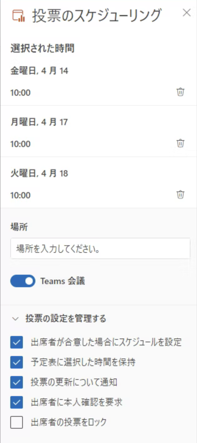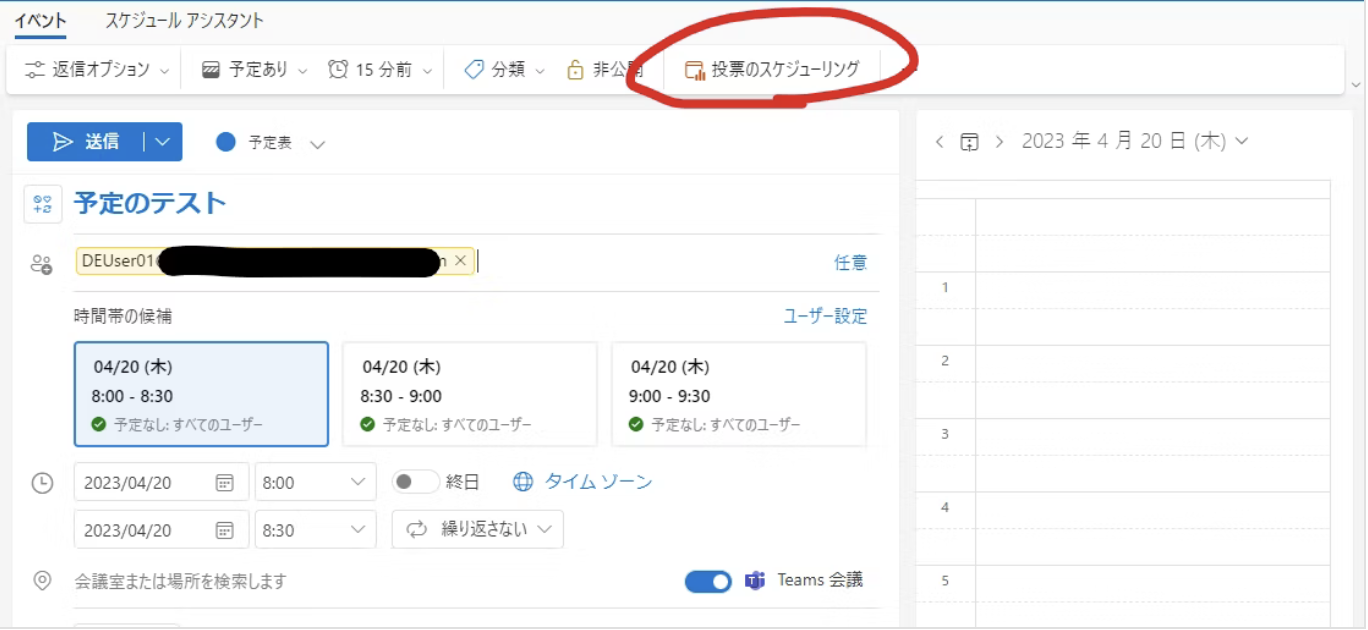 さらに、投票機能は使い方がシンプルで直感的です。Outlookを日常的に使用しているユーザーにとって、特別な学習が不要で、すぐに活用できる点が魅力です。これにより、スケジュール調整にかかる時間を最小限に抑え、業務の効率化を図ることができます。