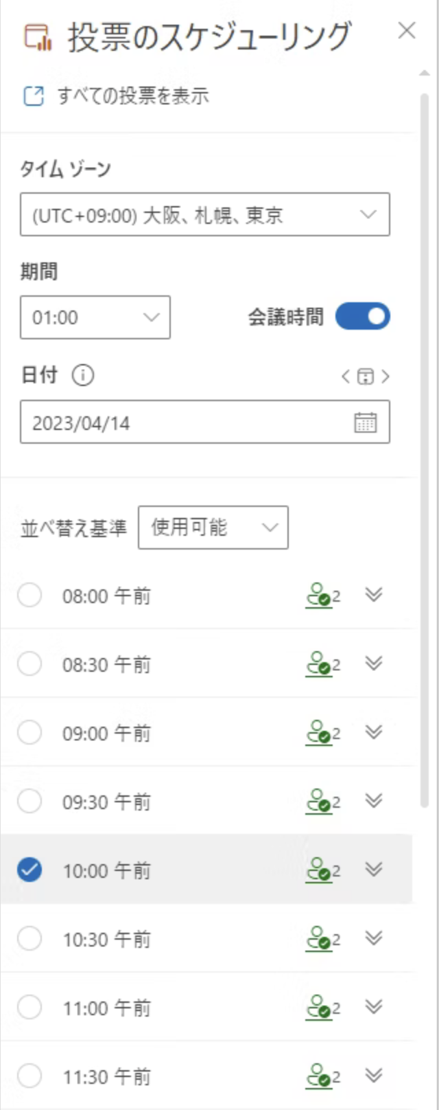 この機能により、全員が参加可能な時間帯を一目で確認できるため、手動での調整作業が大幅に軽減されます。