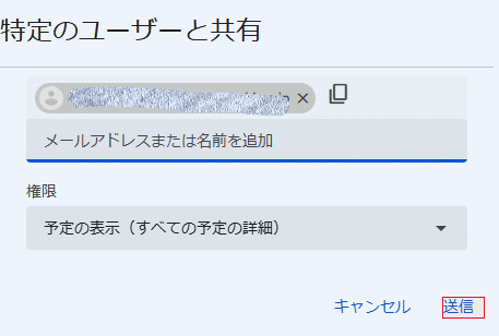 3.「カレンダーを追加」に共有したいユーザーのメールアドレスを入力