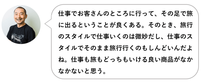 どちらも本気でしたいからこそ、旅と仕事の行き来をシームレスにする商品の必要性。