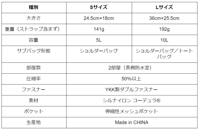 「PackBag」は、荷物のパッキング時に大活躍する「圧縮バッグ」から、旅先では「ショルダーバッグ」に簡単に変形させることができ、旅から仕事へ、また、仕事から旅へを、シームレスにします。また、超軽量・強靭・長期撥水の特殊素材を贅沢に使用し、一部防水加工を施すなどしており、あらゆる旅のシーンでタフに活躍します。