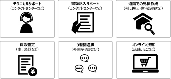 導入に際して、効果が見込める業務の選定や、他のソリューションとの組み合わせや使い分けなど、費用対効果の最大化も設計いたします。また、利用用途を限定しませんので、顧客との対面を主とした業務や、オンサイトサポートの代替、社内ヘルプデスクでの活用など、柔軟な業務設計も可能となります