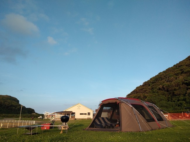Snow Peak の機材で気軽にキャンプを楽しめます。スタッフが設営と撤去を行うので、手ぶらで参加できます。※島内のキャンプ場で行います。電源や飲料水はありますが、アメニティ類、お風呂やシャワーなどはありません。