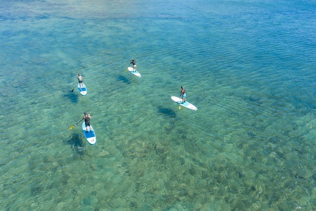 海の瞑想とも言われるSUP。ゆっくりと海の上を散歩する感覚で遊んでいただけます。初心者でも参加可能。※ウェットスーツを着ますので、海に落ちても安心です。