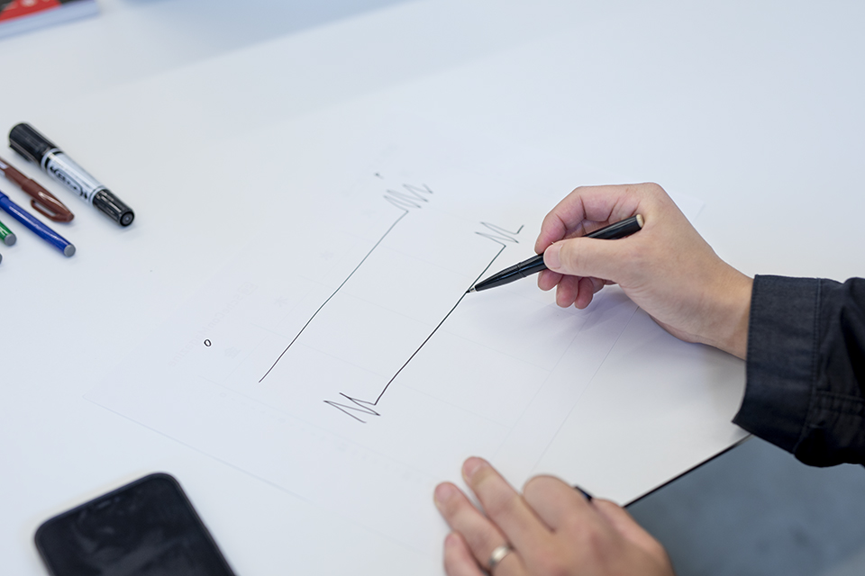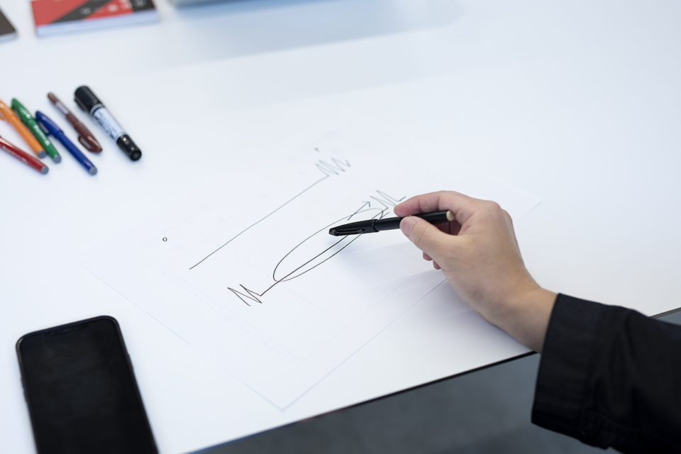 小杉さん 最初からパソコンで描かないこと、かな。手描きだと微妙なデザインでも、パソコンで描くとなんとなくかっこよく見えちゃうんですよ。それをプリントアウトすると、さらによく見えてしまう。でも、それって勘違いなんです。だから、まず手描きで良し悪しを判断して、そこからパソコン作業に入るようにしています。