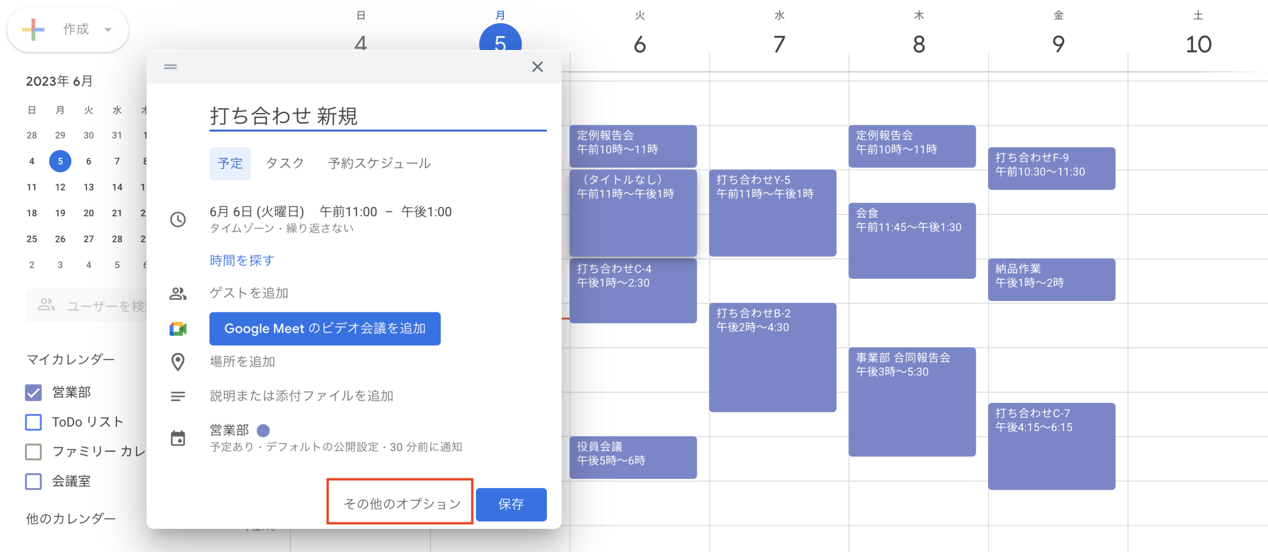 ③更に詳細を入れたい場合は「その他のオプション」をクリック