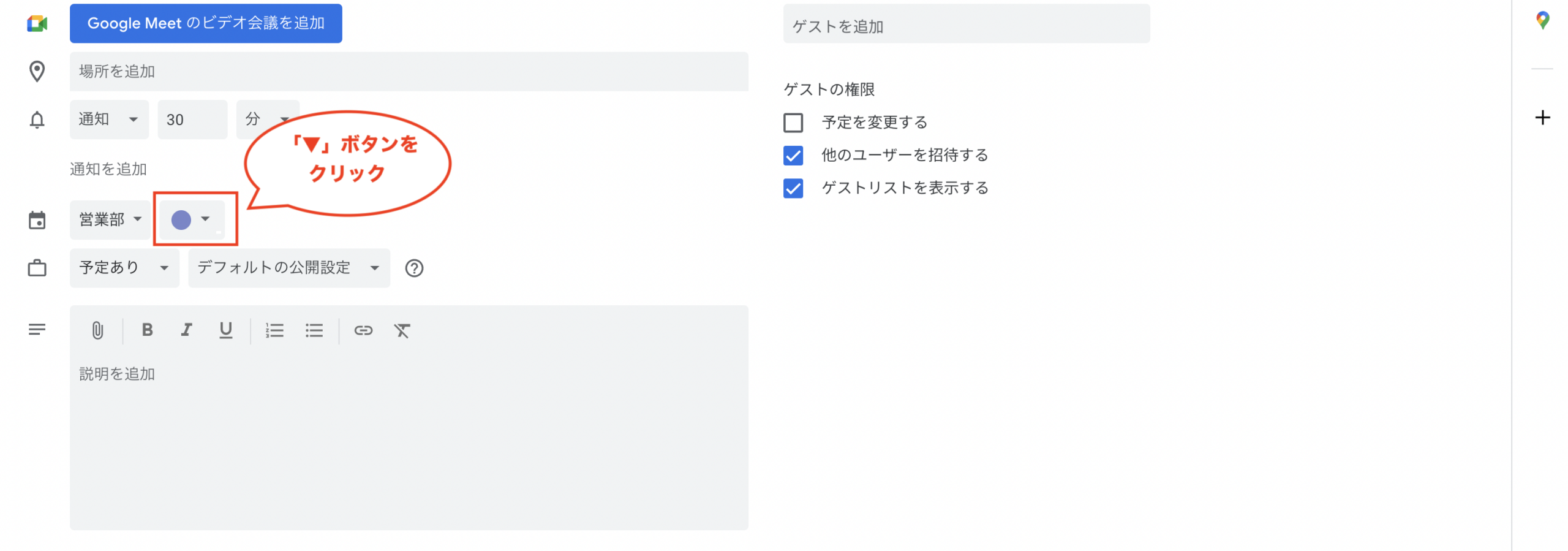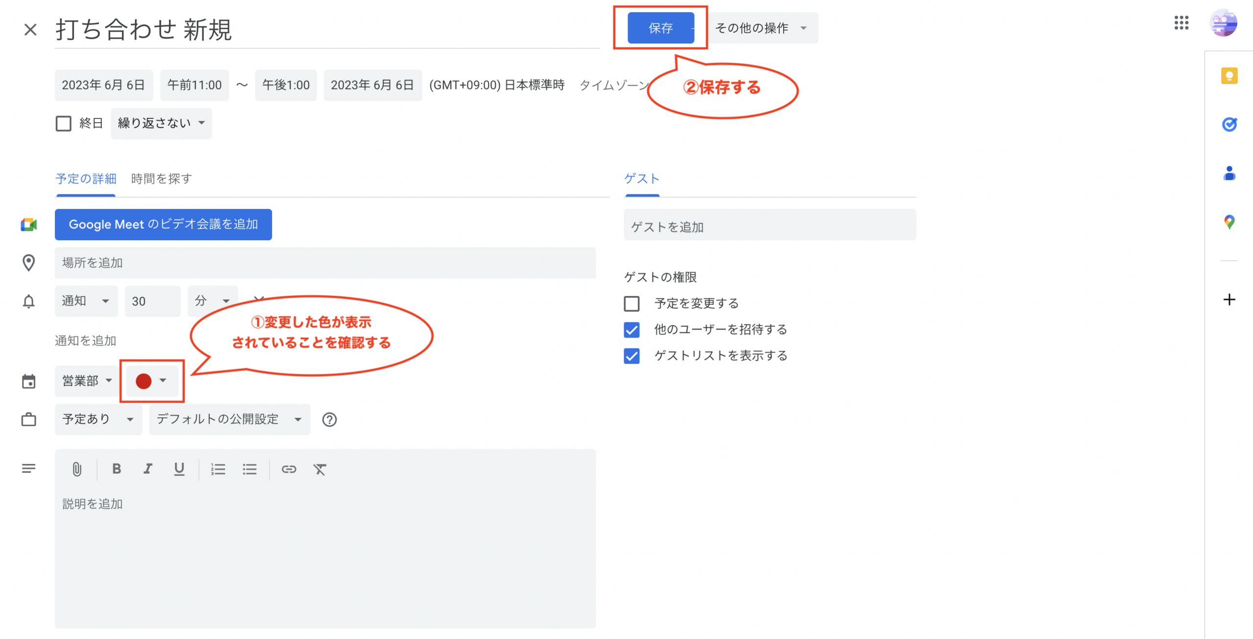 ①予定の登録画面(または編集画面)を表示