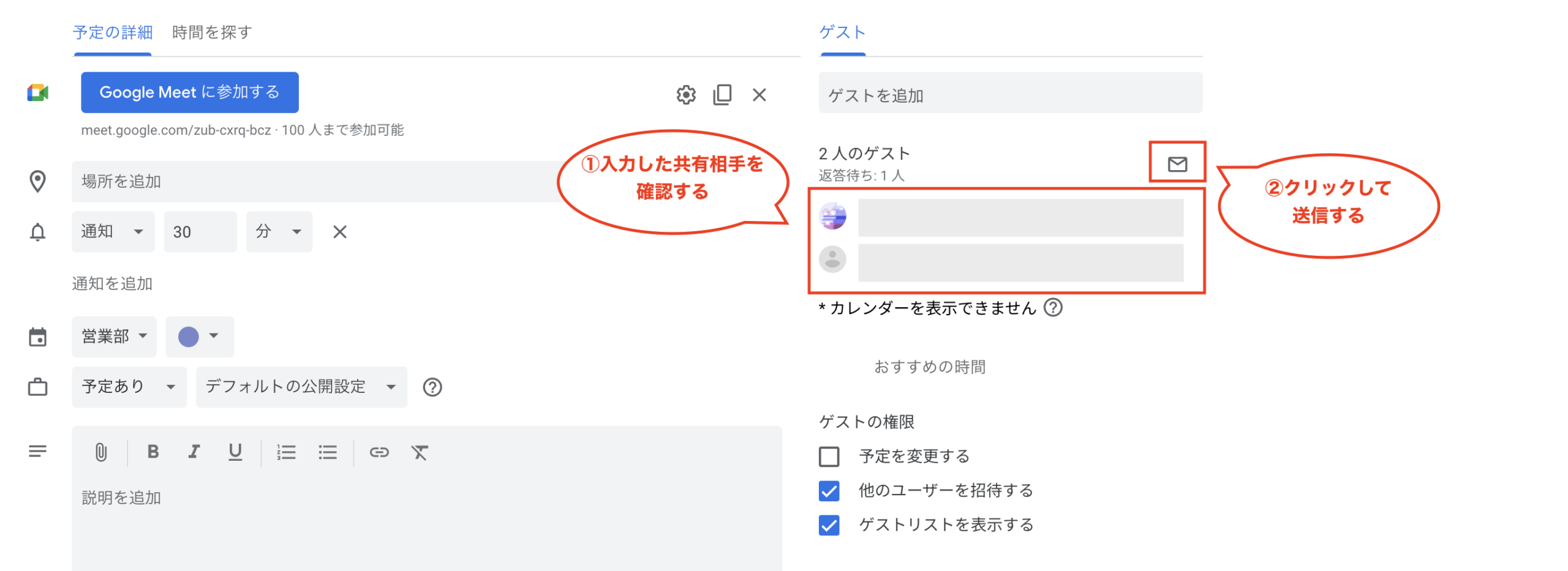 共有しているカレンダーの予定を非公開にする