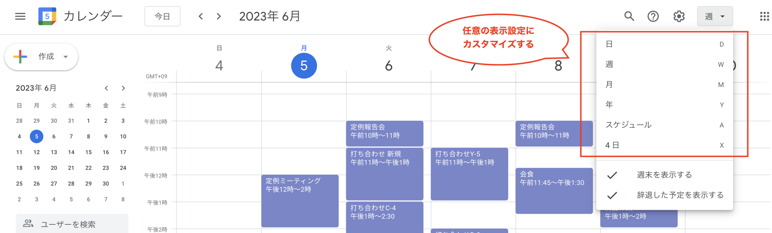 Googleカレンダーをもっと見やすく使うために、自分用にカスタマイズもできます。