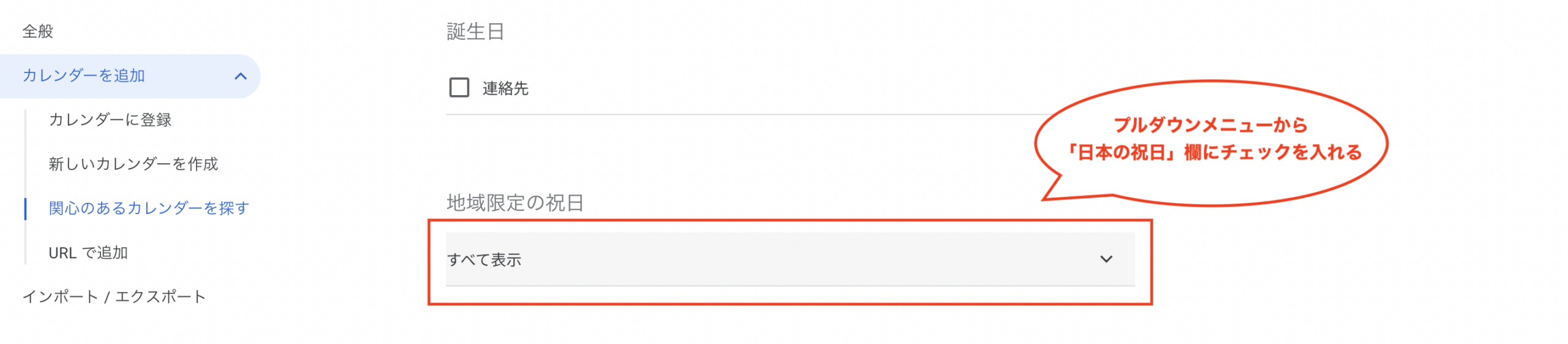 Googleカレンダーに日本の祝日を追加することもできます。