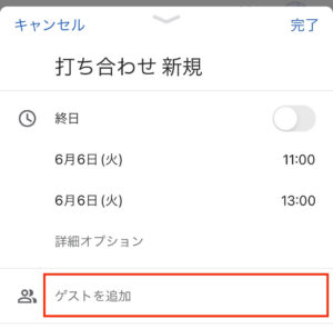 - [ゲストを追加]をタップして共有したいGoogleアカウント(Gmailアドレス)を入力する