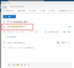 必要なOutlookメールアドレスを登録すると、スケコンのスケジュール調整画面の以下の項目に、メールアドレスが表示されます。