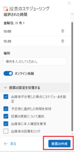 次に、「投票のスケジューリング」をクリック。すると、画面右側に以下の画面が表示されます。