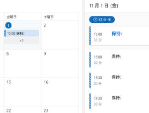 カレンダーの画面に戻ると以下のように「保持」として予定が作成されます。