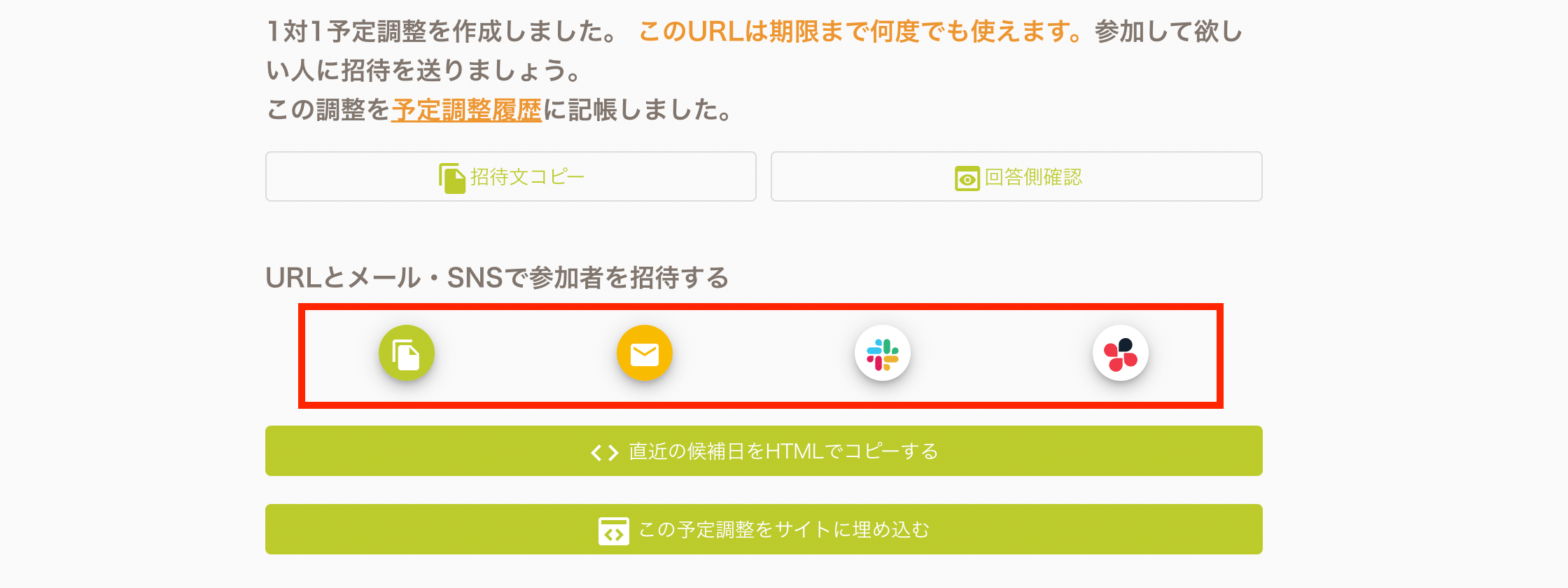 日程調整ツールでは、日程を確定させると同時に、日程をお知らせするためのURLが発行されます。