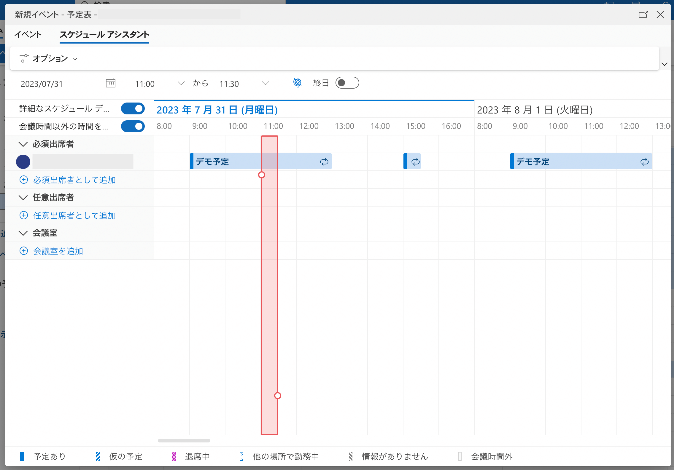 Outlookでは「スケジュールアシスタント」という機能があります。