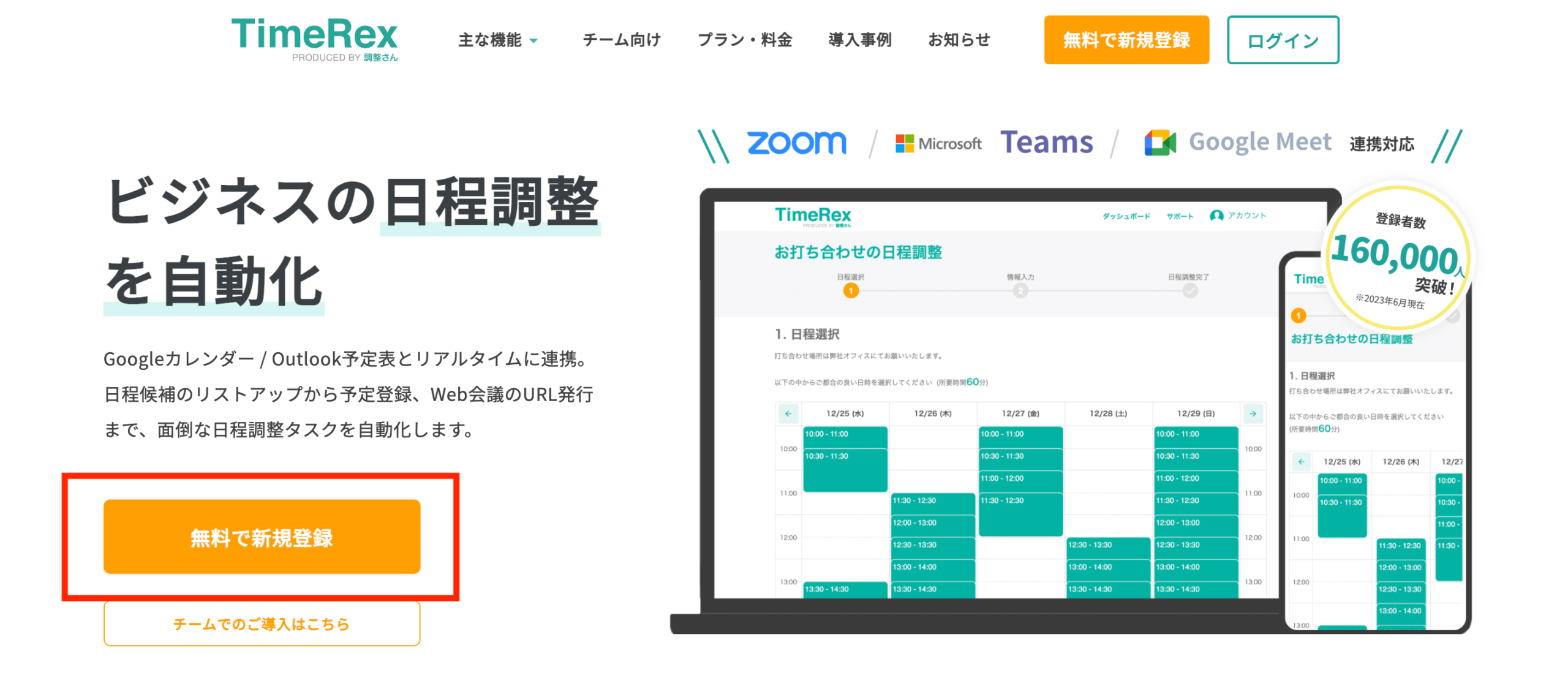 「TimeRex」は、「調整さん」を進化させたビジネス版の日程調整ツールとしてリリースされました。