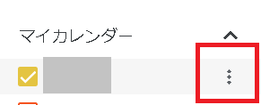 メイン画面左側にある「マイカレンダー」から目的の予定表を選び、右端にある「︙」をクリック。