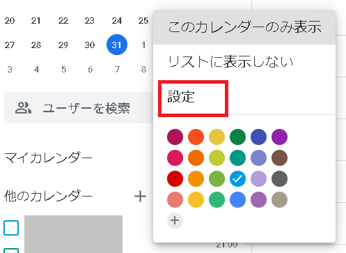 「他のカレンダー」から目的の予定表を選び、右側にある「︙」を押します。