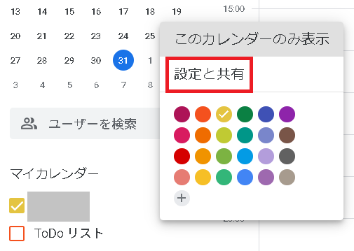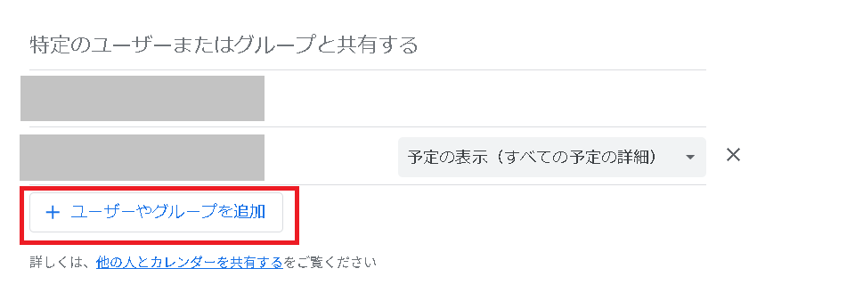 特定のユーザーにのみカレンダーを共有