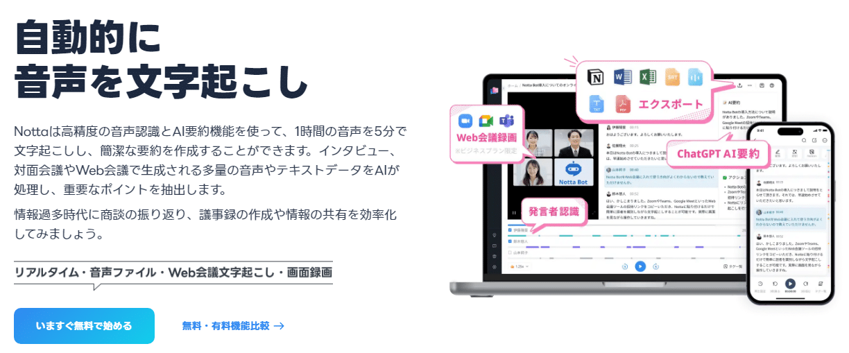 Nottaは、文字起こしサービスに加えて日程調整などの機能も備えたサービスです。